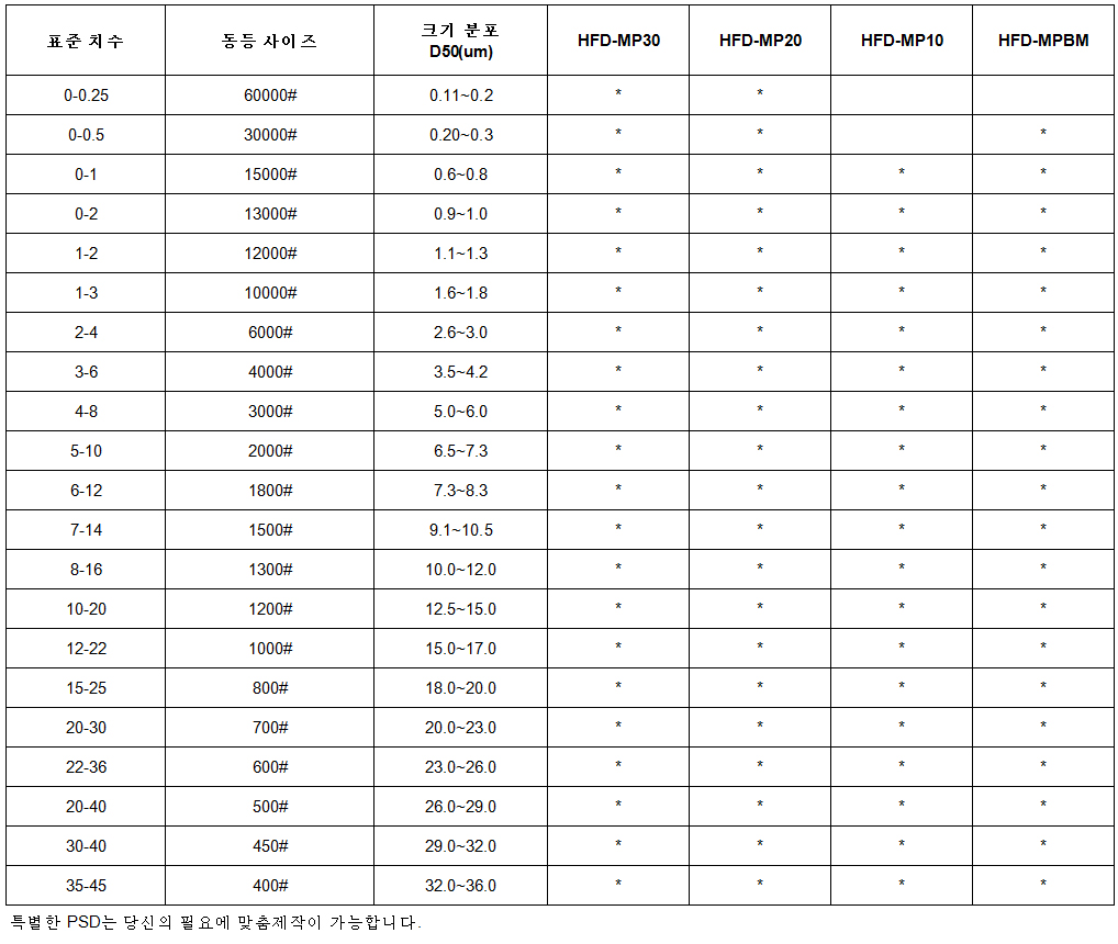HFD-MP20반-고정 모양, 중간 힘과 열 안정성. 이는 좋은 PSD를 가지고 있습니다. 주로 레진, 유리화와 금속 본드 시스템으로 텅스턴 컬비드, 보석, 안경과 다른 재료를 사용합니다.