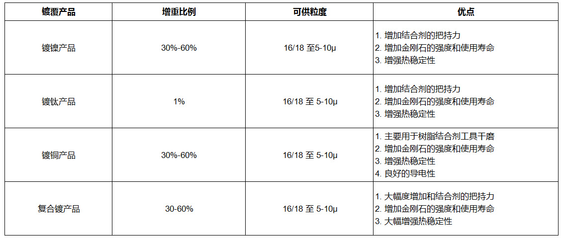 镀覆系列金刚石粉主要是为了提高工具的使用效率,增加金刚石粉和结合剂的把持力。
